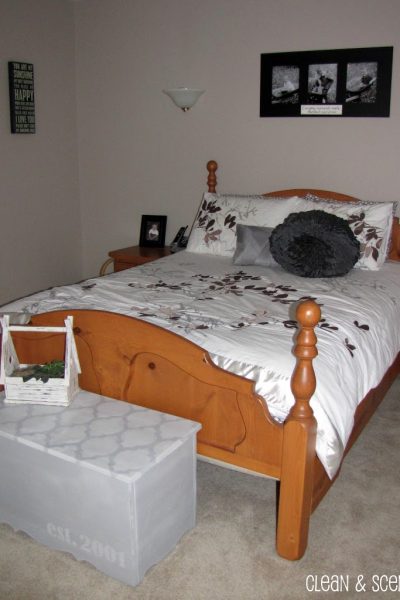 So my first big project of the year is tackling our master bedroom. Yay!! Since moving in to our house 10 years ago, we haven’t done a whole lot with the bedroom. We did replace the pink carpets and paint the lovely peach walls but other than that it has pretty much remained the same. We have a fairly…
