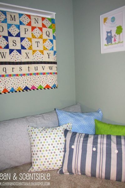 Well, after almost 10 months of procrastination, I have finally made some progress on the reading nook in Connor’s room. It is one of those projects that I had huge expectations for {picture some kind of wall treatment with built ins on either end} but, reality has finally set in and I have had to adapt my vision. Darn you…